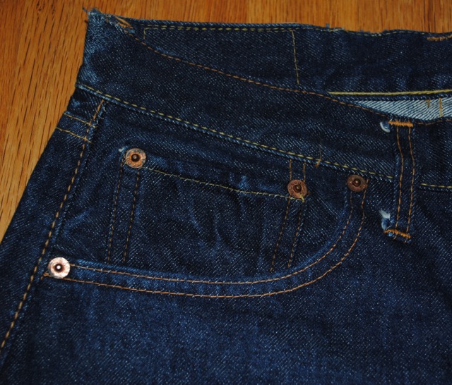 ジーンズの内側のバックポケットの左右上端部に隠しリベットが取り付けられているのが501XXのディテールの一つです。隠しリベットが付いていれば、パッチが無くても501XX確定です。
