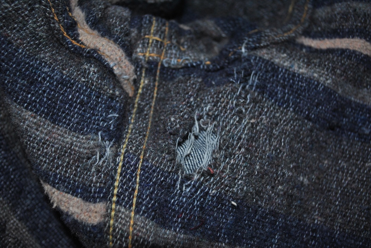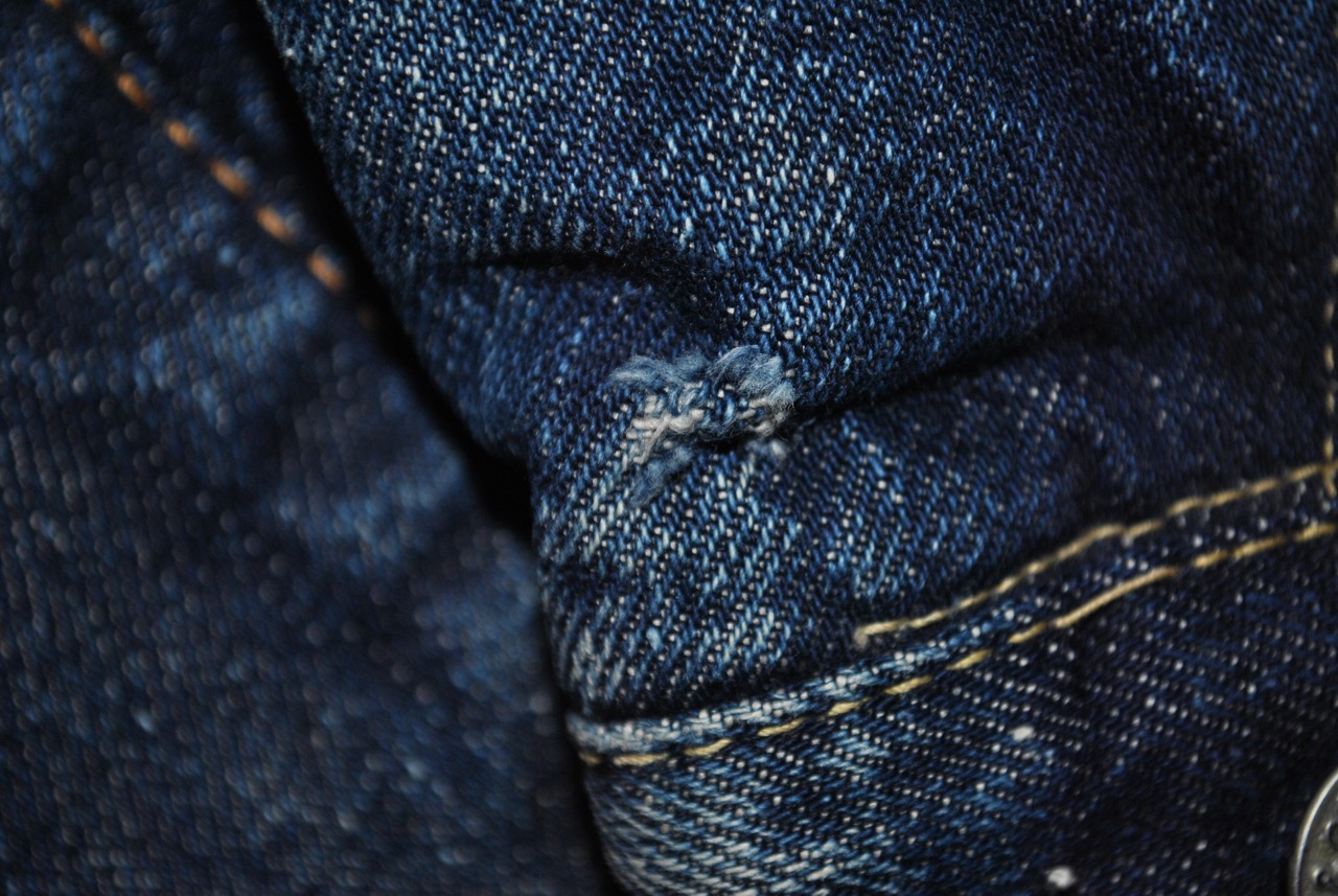 ブランケット付きデニムジャケットは、ブランケットが付くため強度が増し、デニムのみのモデルよりもデニムに穴や破れなどのダメージは少ない傾向があります。