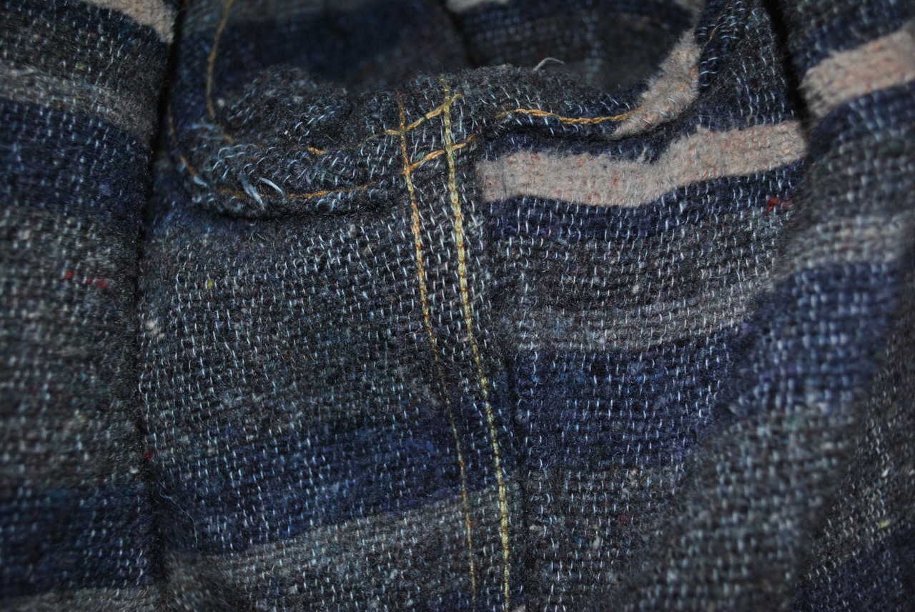 ジャケットの表側は通常のデニムで、袖を含めてジャケットの内側にブランケットが縫い付けられています。