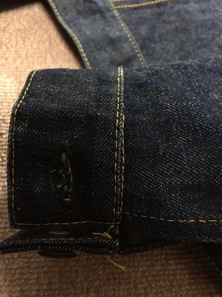 濃紺で糊も残った状態のヴィンテージデニムの魅力を堪能できる状態と言えます。