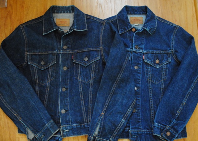ヴィンテージ 70505 ビッグEの557仕様と通常の70505 ビッグEを並べた写真です。両方共表記サイズは38。サード仕様が若干着丈が短く、ポケットから裾に向かうVラインの終端が閉じ気味になっていることです。 pic.twitter.com/cvXG25IQyO