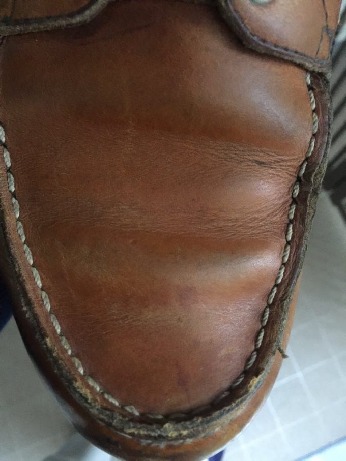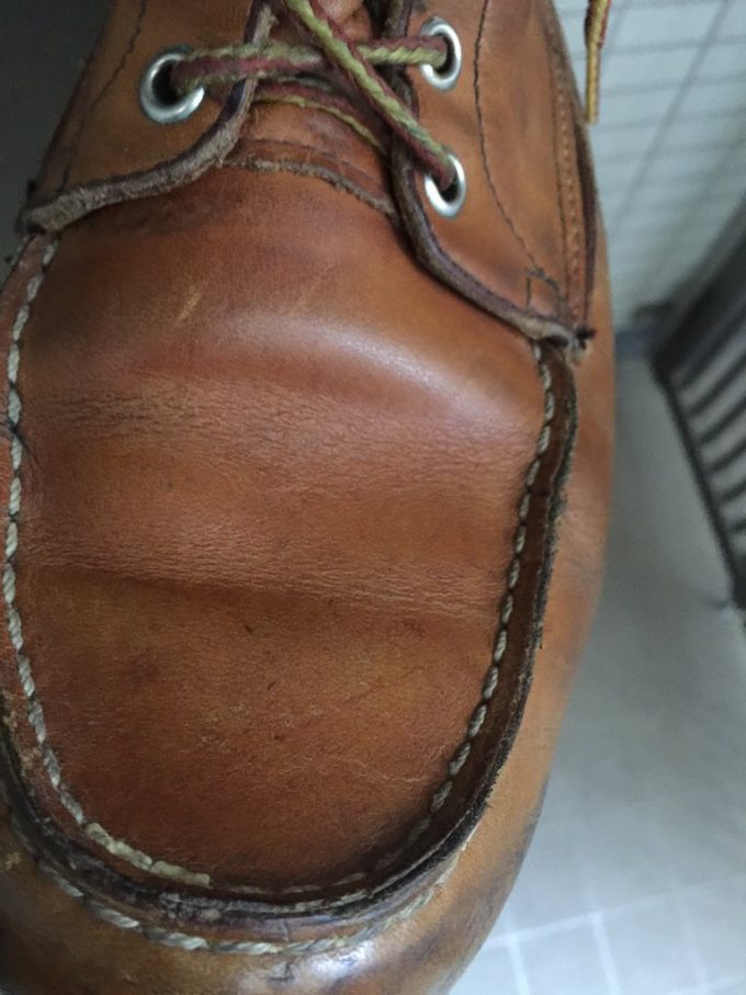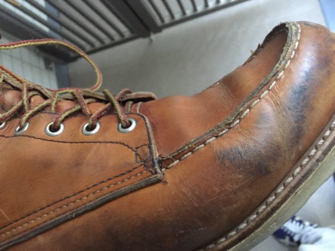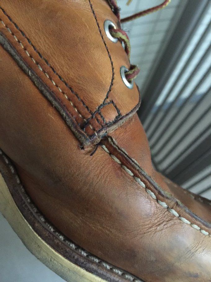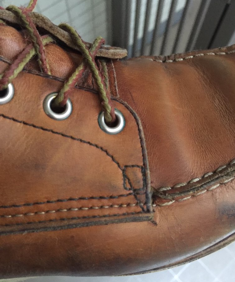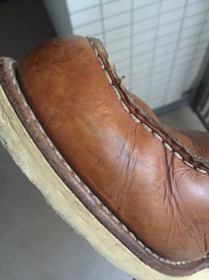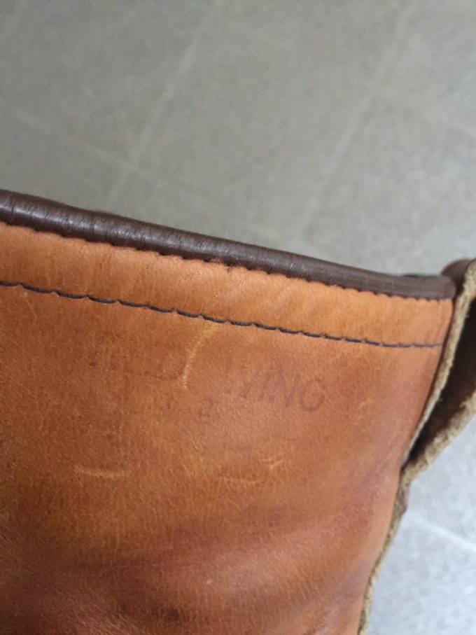 本品の刻印部の拡大写真です。RED WINGの下に2と思われる数字があります。その前の数字は読み取りが困難です。70年代のレッドウイングの外側の数字の刻印は、製造年が先でその後が製造月です。(80年代とは順序が逆です。)