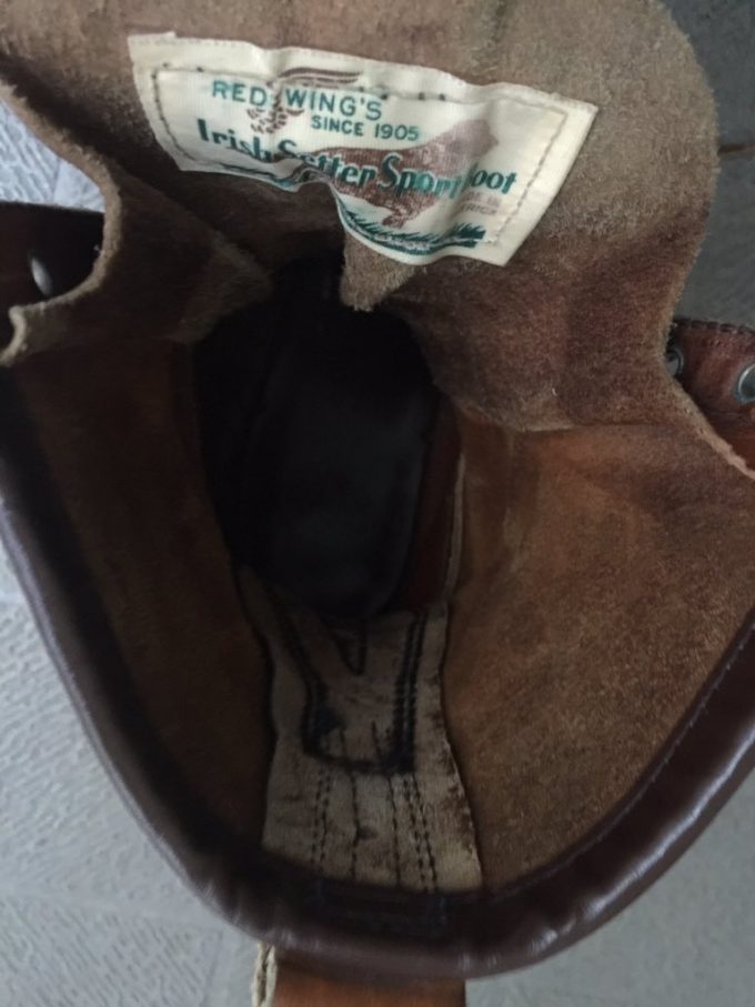 アイリッシュセッターで、このDu-Flexのソールのロゴが入っている場合は、70年代後半以前。レッドウィングのロゴが入っていれば、70年代後半以降と判定できます。