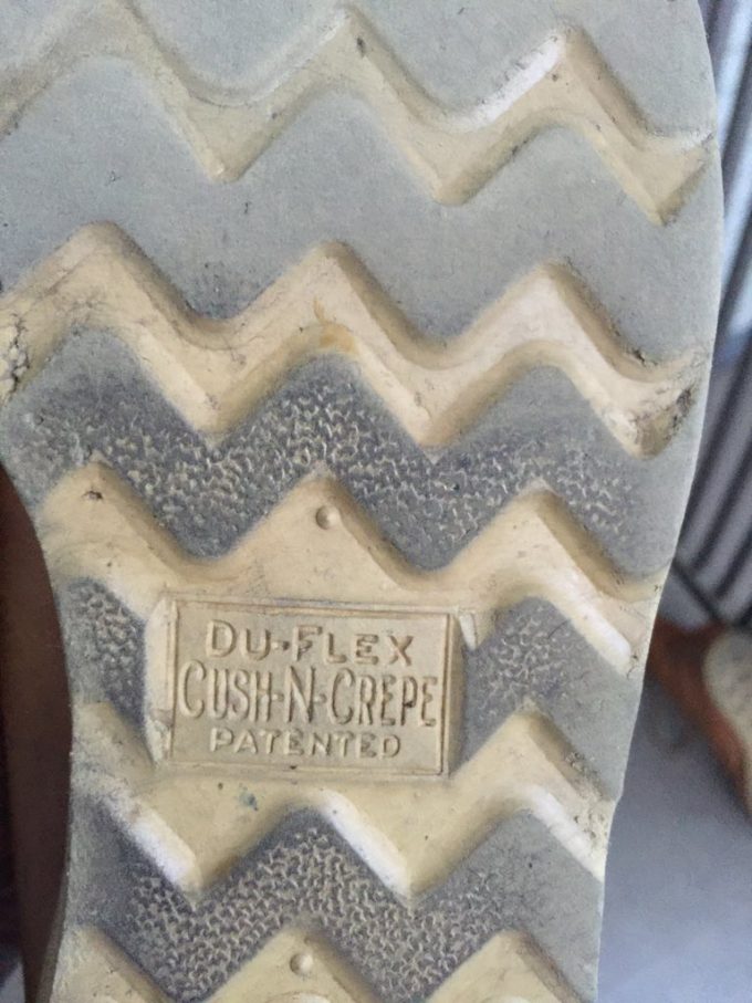 最初のトラクショントレッドソールは、土踏まず部にDu-FlexのCush-n-Crepeのロゴが入っています。