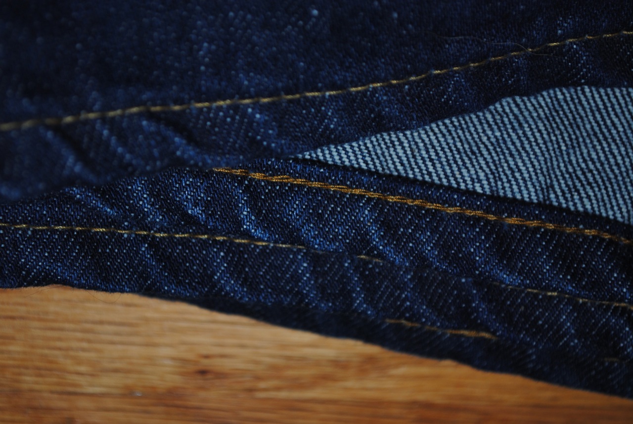 27Wの裾部です。チェーンステッチです。既に良い感じでチェーンステッチによる特有のうねりのアタリが付き始めています。良い感じの裾のアタリができることはほぼ確実だと思います。
