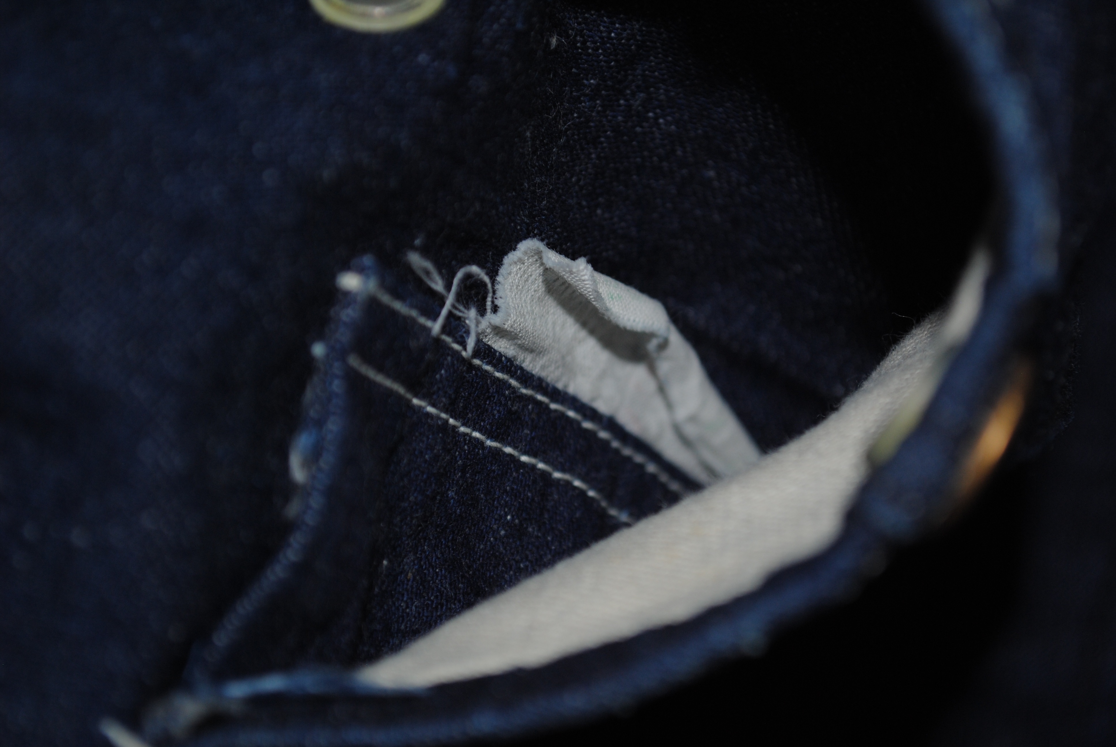 濃紺のジェルトデニムにホワイトのステッチがアクセントになっています。フラッシュ未使用での写真です。02
