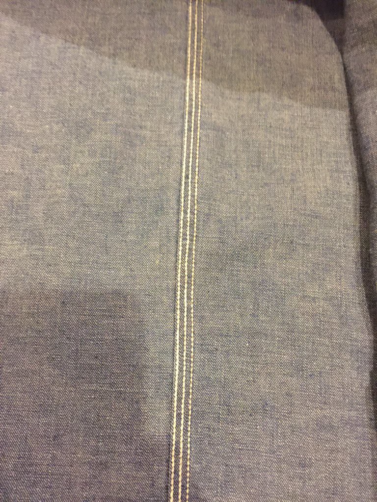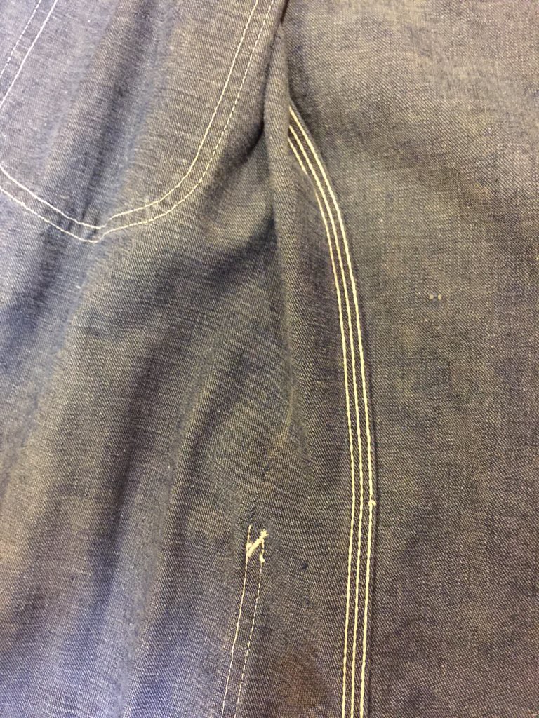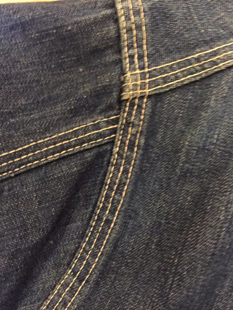 Leeのジェルトデニムを使ったワークウェア製品は、取り付け強化のために負担がかかり易い主要な部分の取り付けは、ホワイトのトリプルステッチが使用されていることが特徴の一つです。