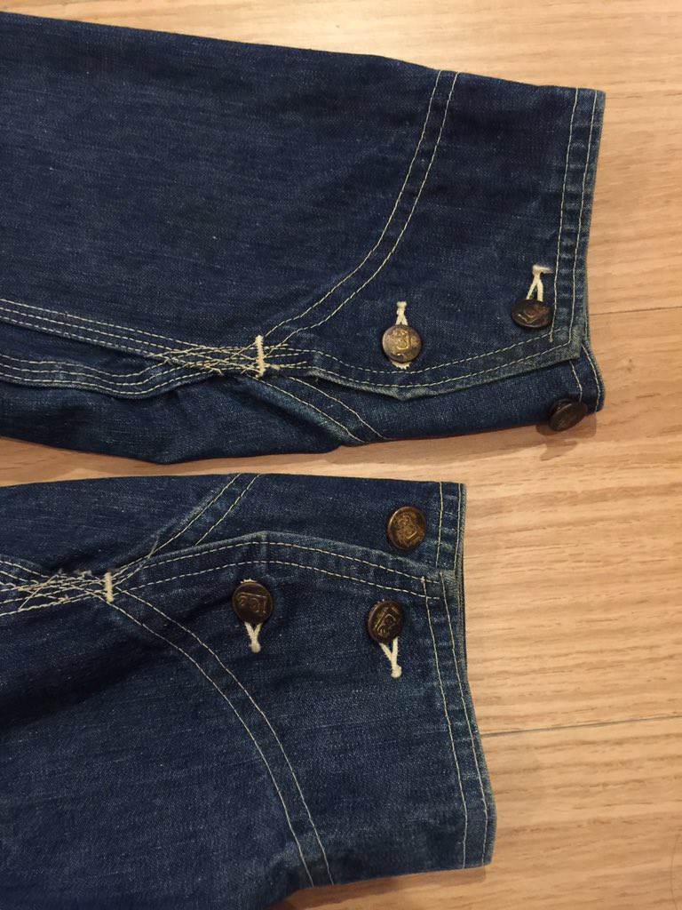 カフスは袖先は留幅を調節できるように二つ付き、元にもう一つの左右のカフスに各3つのボタンが取り付けられています。
