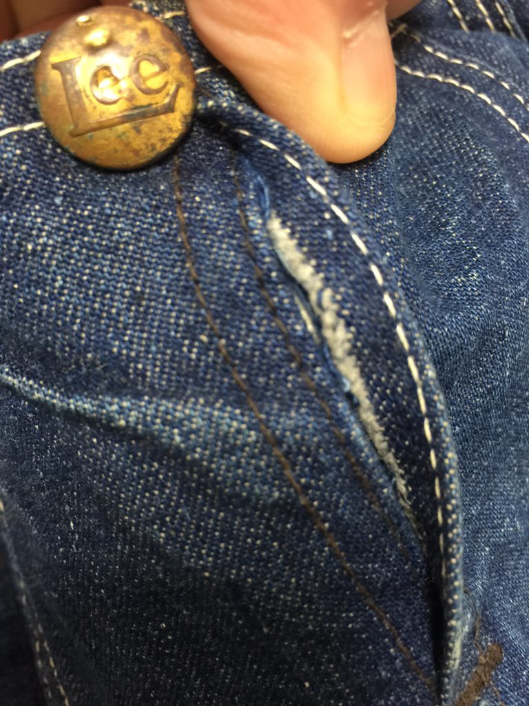 また、通常のeのハウスマークへ移行後、ほぼ同時期くらいに左胸ポケットに通称ピスネームタグと呼ばれる長方形の白い布にLee Union Madeと刺繍されたタグが取り付けられるようになります。