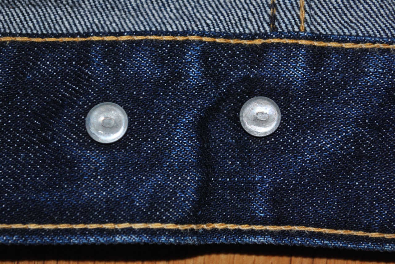 写真では、フロントヨークなどシーム部の色落ちが目に付きますが、実際に見ると濃紺でシーム部の色落ちはそれほど気になりません。(直接見るときは、均等にモノを見るのではないためと思います。)