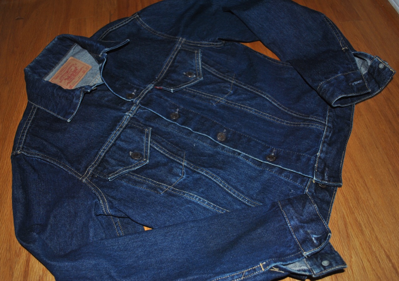 後ろ側全体の写真です。後ろから見ると、本当に濃紺です。サードモデル特有のデザイン、シルエット、それに加えて60年代前半のリーバイスヴィンテージデニムの色味と生地の風合いが組み合わさって、特有の雰囲気が感じされます。