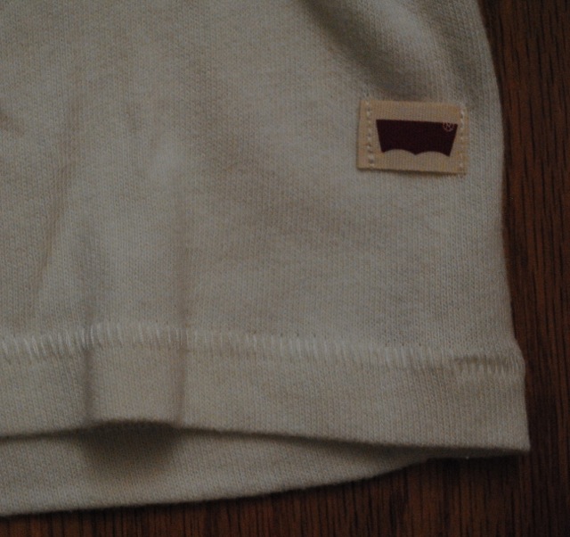 左脇、裾に近い位置にリーバイスのバットウイングのロゴのタグが取り付けられています。この写真は生地の感じ、雰囲気が掴みやすいと思います。