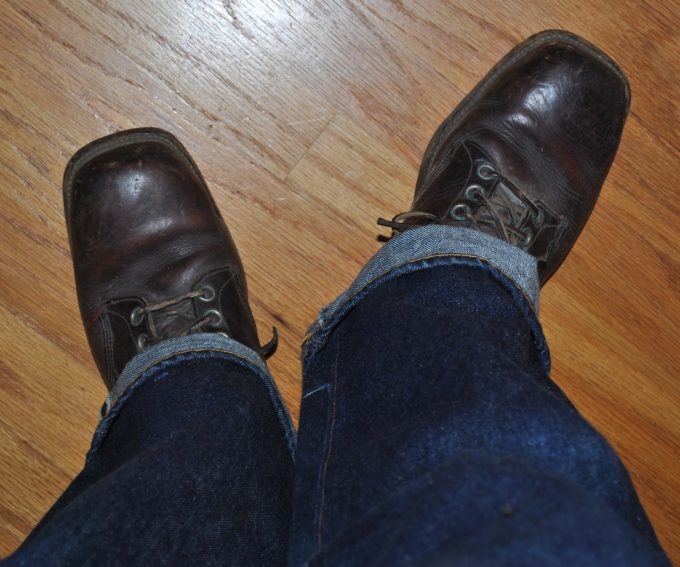 写真は、50年代初め頃の革パッチの501XXと組み合わせてみた写真です。元はスキー靴ですが、ヴィンテージのおしゃれ靴として、タウンユースとして使っても違和感がない位です。(笑)