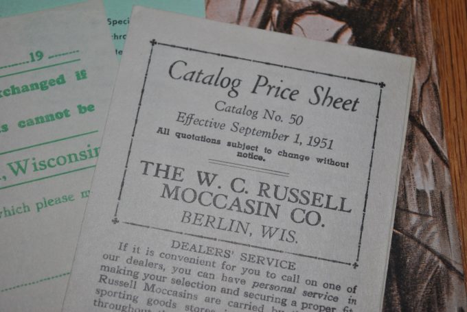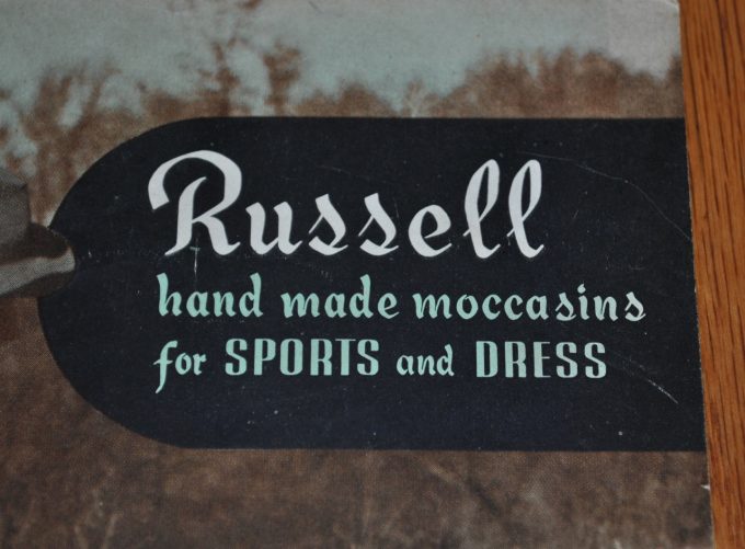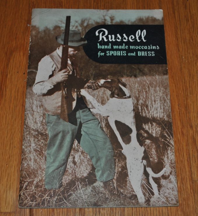 1951年のラッセルモカシンのカタログです。表紙には、Russell, その下にhand made moccasins for SPORTS and DRESSのタイトルがあります。