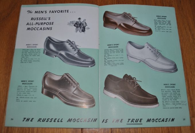 少なくとも、1950年代初めには、ラッセルモカシンは、社名にもあるように、真のモカシンを全面的な売り文句・特徴にした製品展開をしていたことが伺えます。